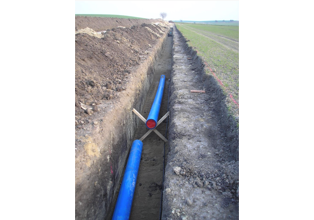 Wir sind im kompletten Rohrleitungsbau tätig, wie z. B. Verlegung von Ver- und Entsorgungsleitungen, oder Verlegung von Druckrohrleitungen.